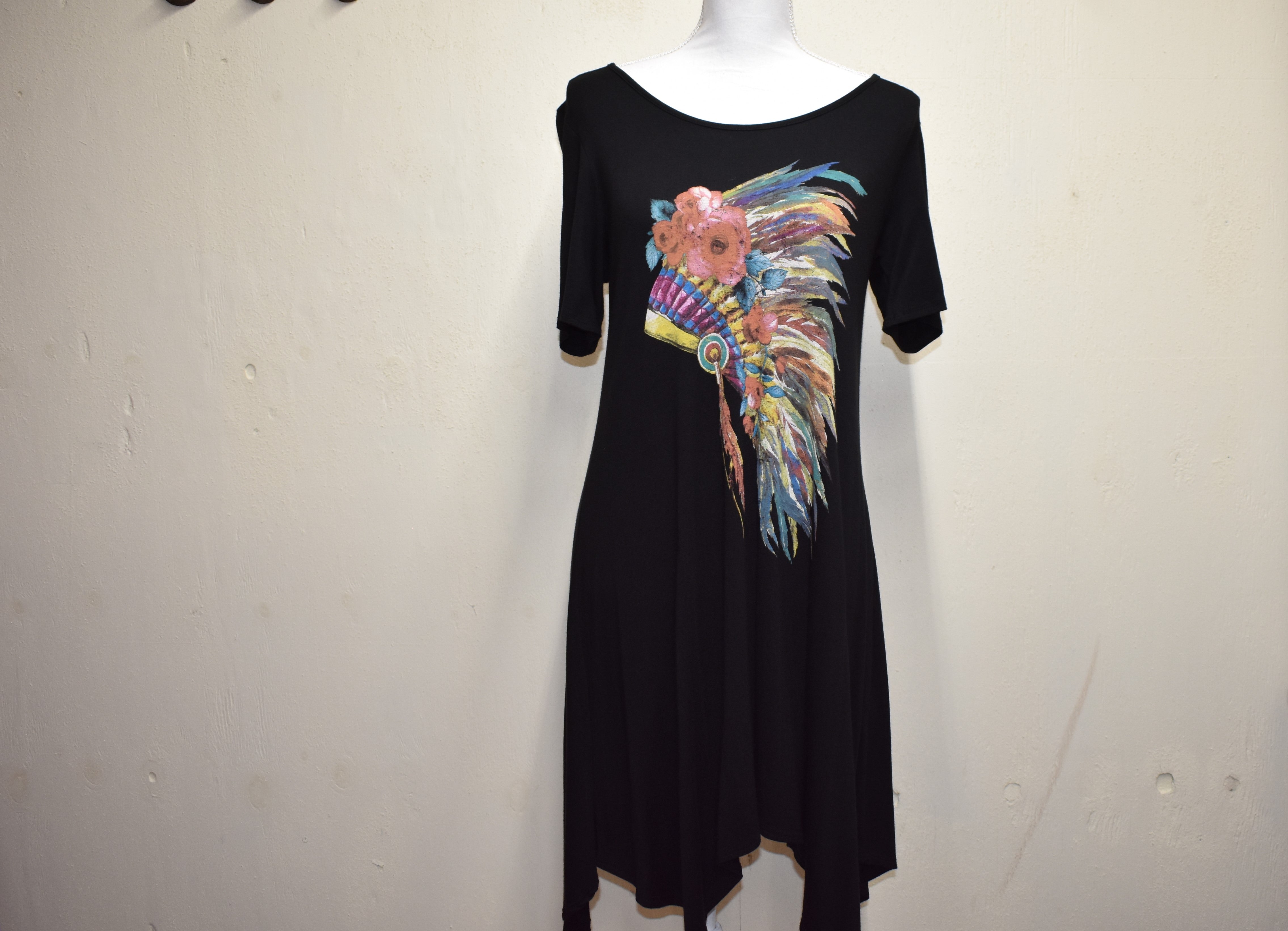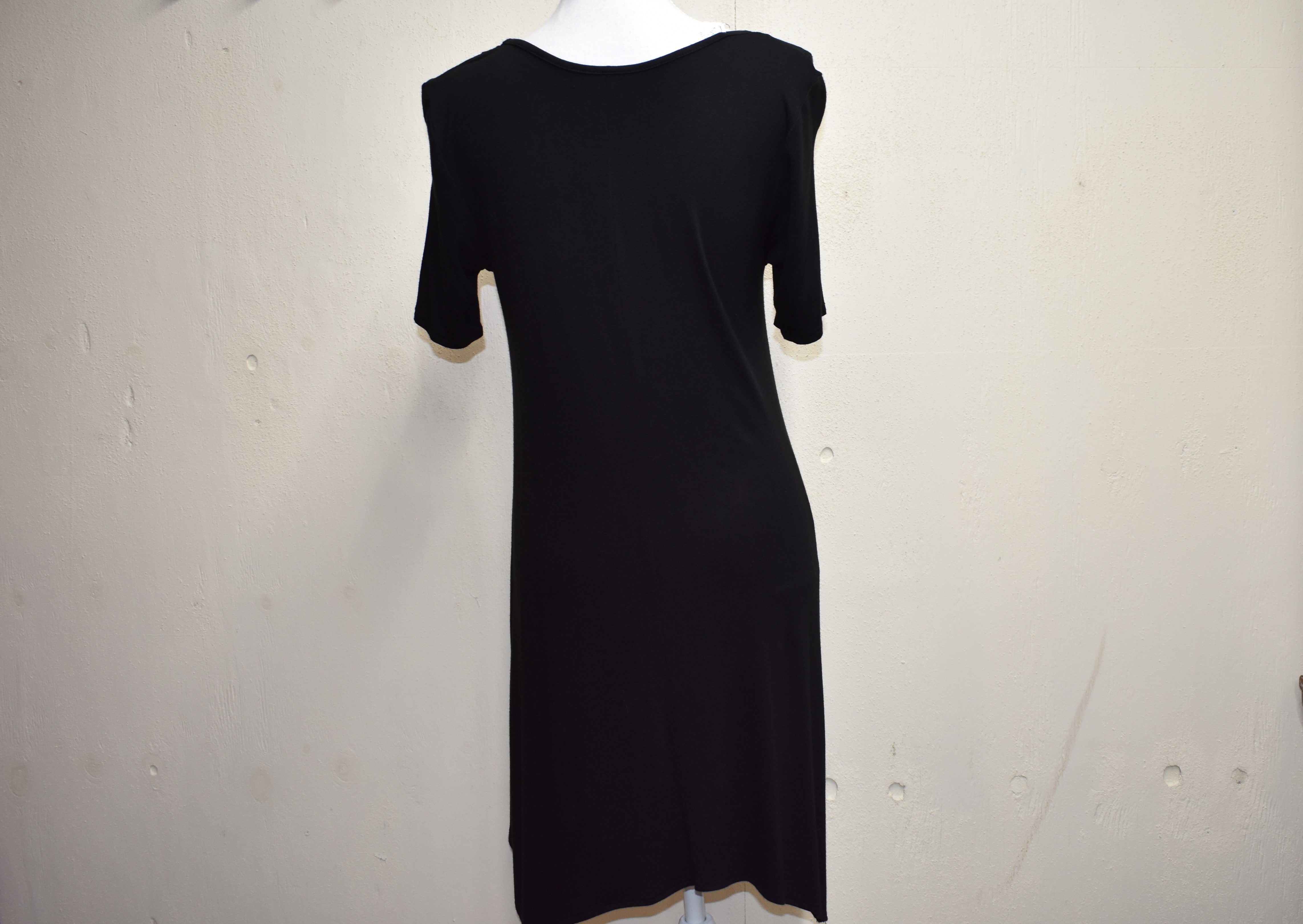 Uniquely stylish and chic, this Short Sleeve Black Dress with Headdress is the perfect way to stand out. Crafted in soft black fabric and finished with a stunning headdress, this dress will surely elevate any look. Look your best and make a statement when you slip into this dress.