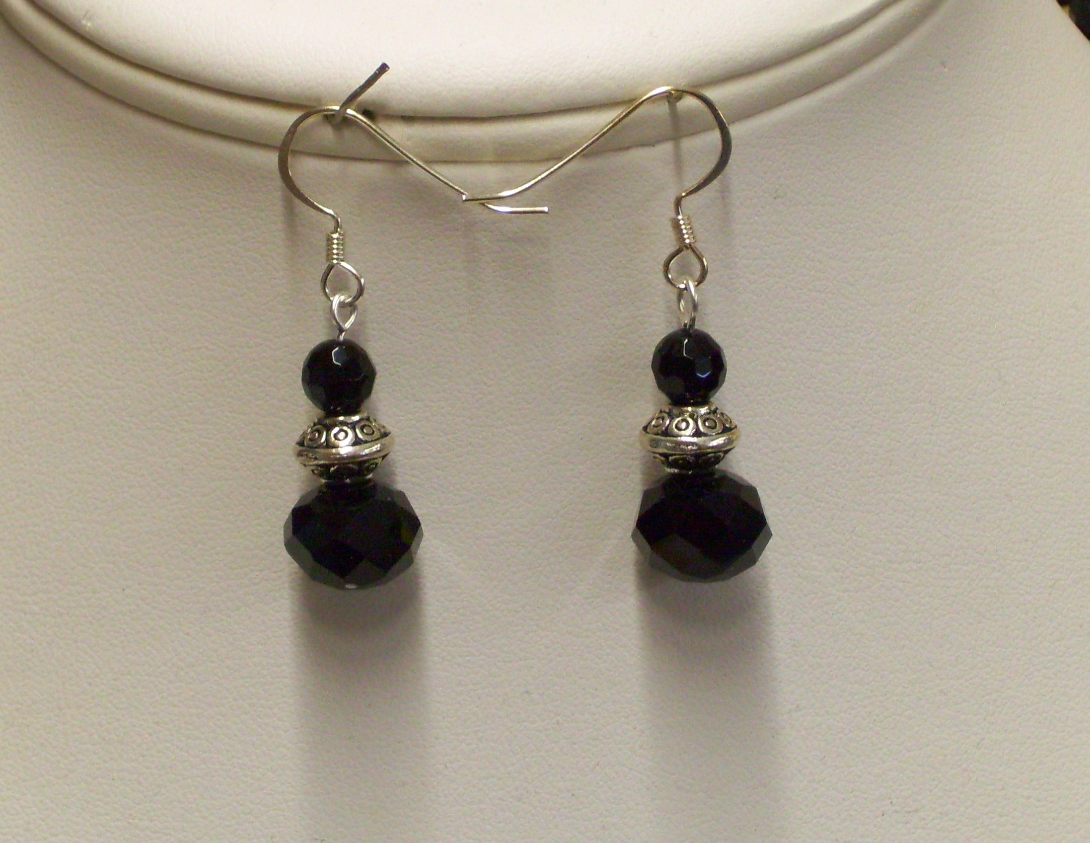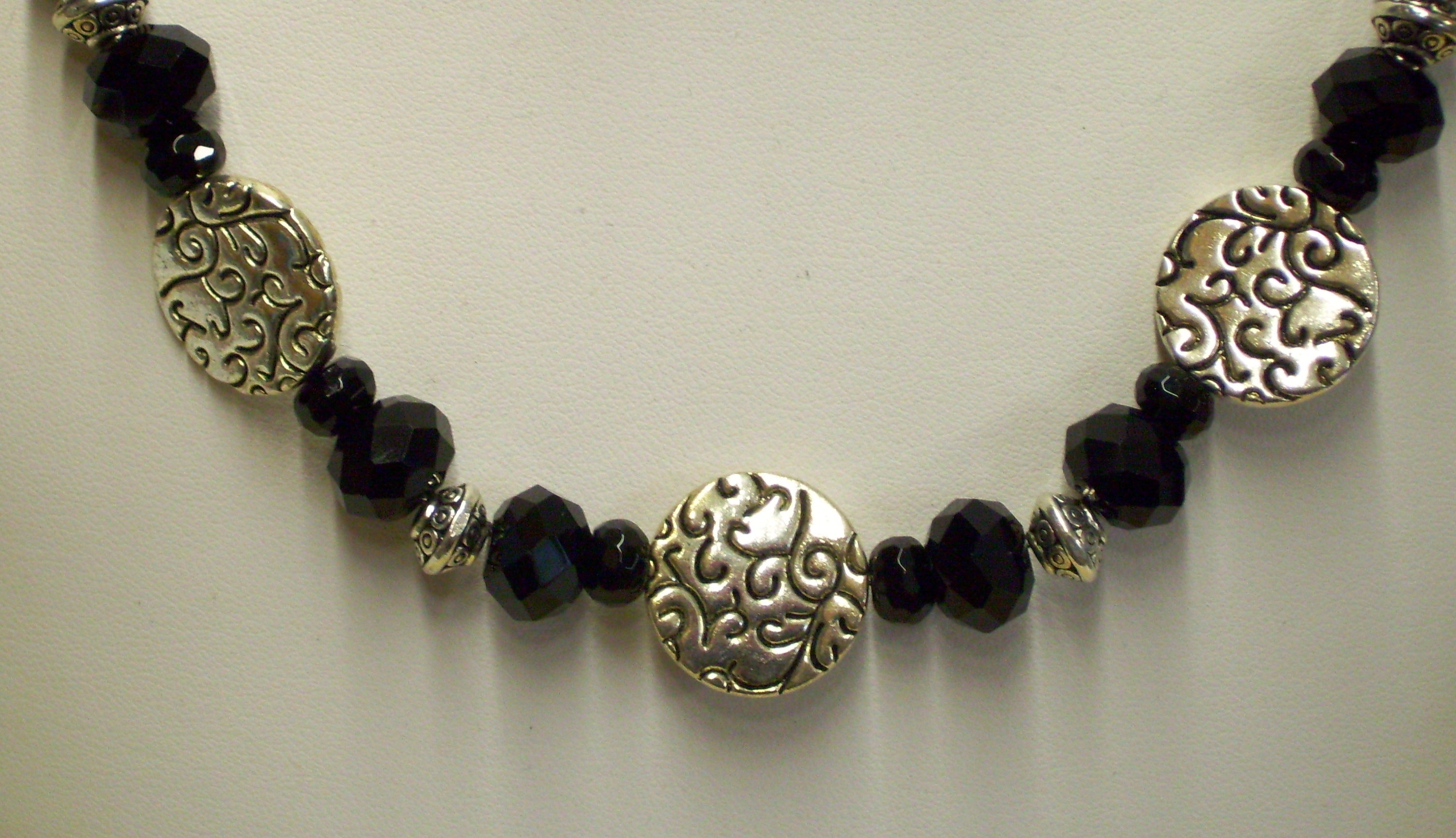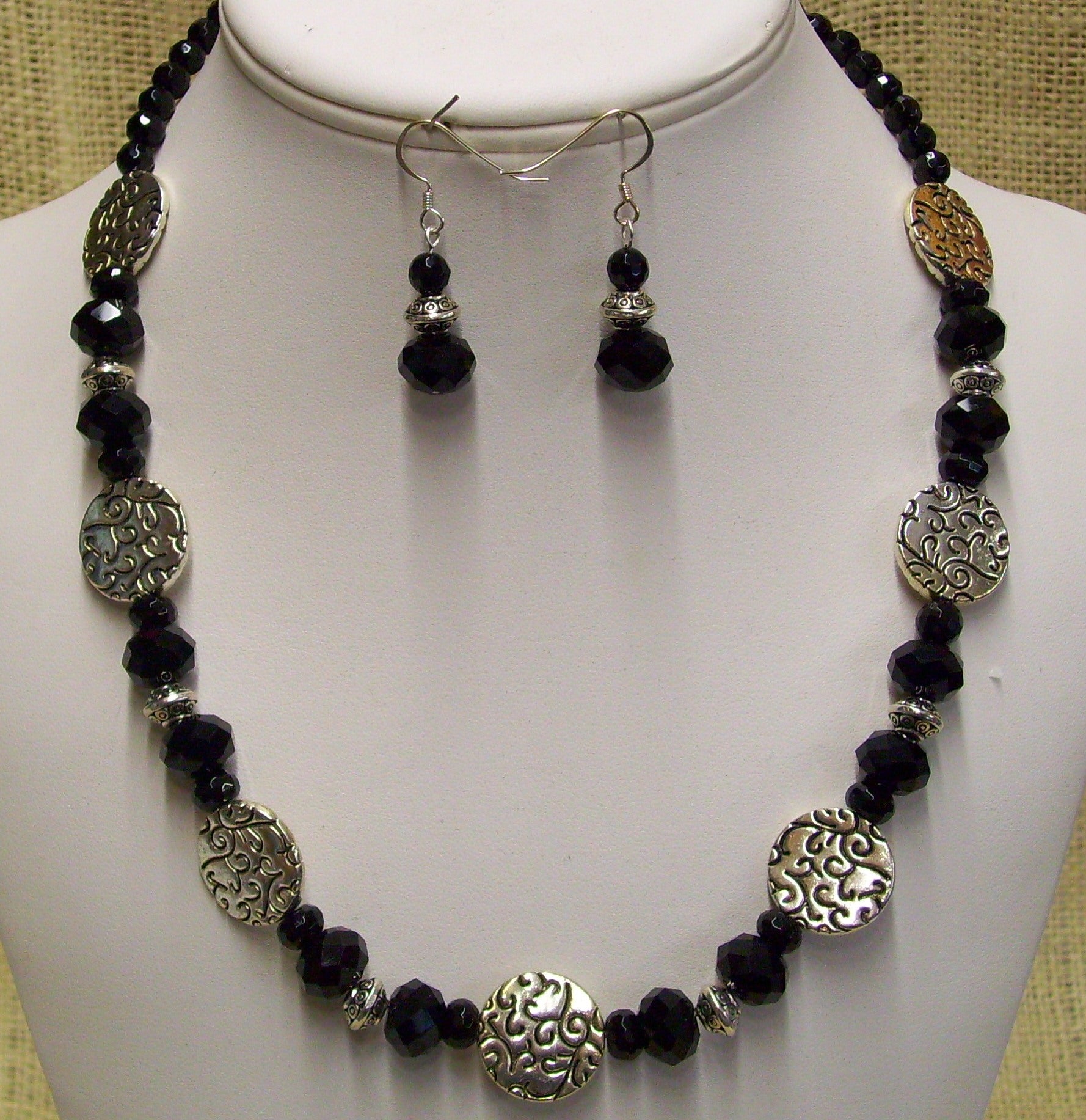 This handmade necklace and earrings set is sure to make you stand out! Featuring beautiful black onyx and shimmering silver discs, the 21-inch chain is the perfect mix of sophistication and personality. Don't just show up - arrive in style! Hook and eye closure. D&W Designs.