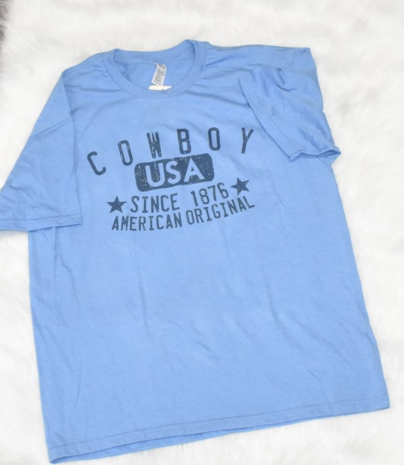 Yee-haw! Get ready to chase down adventure with the "Cowboy USA" American Original Men's Tee. This classic style and comfy fit will have you feeling like the ultimate cowboy in the Wild West. So saddle up and get ready to ride in style!