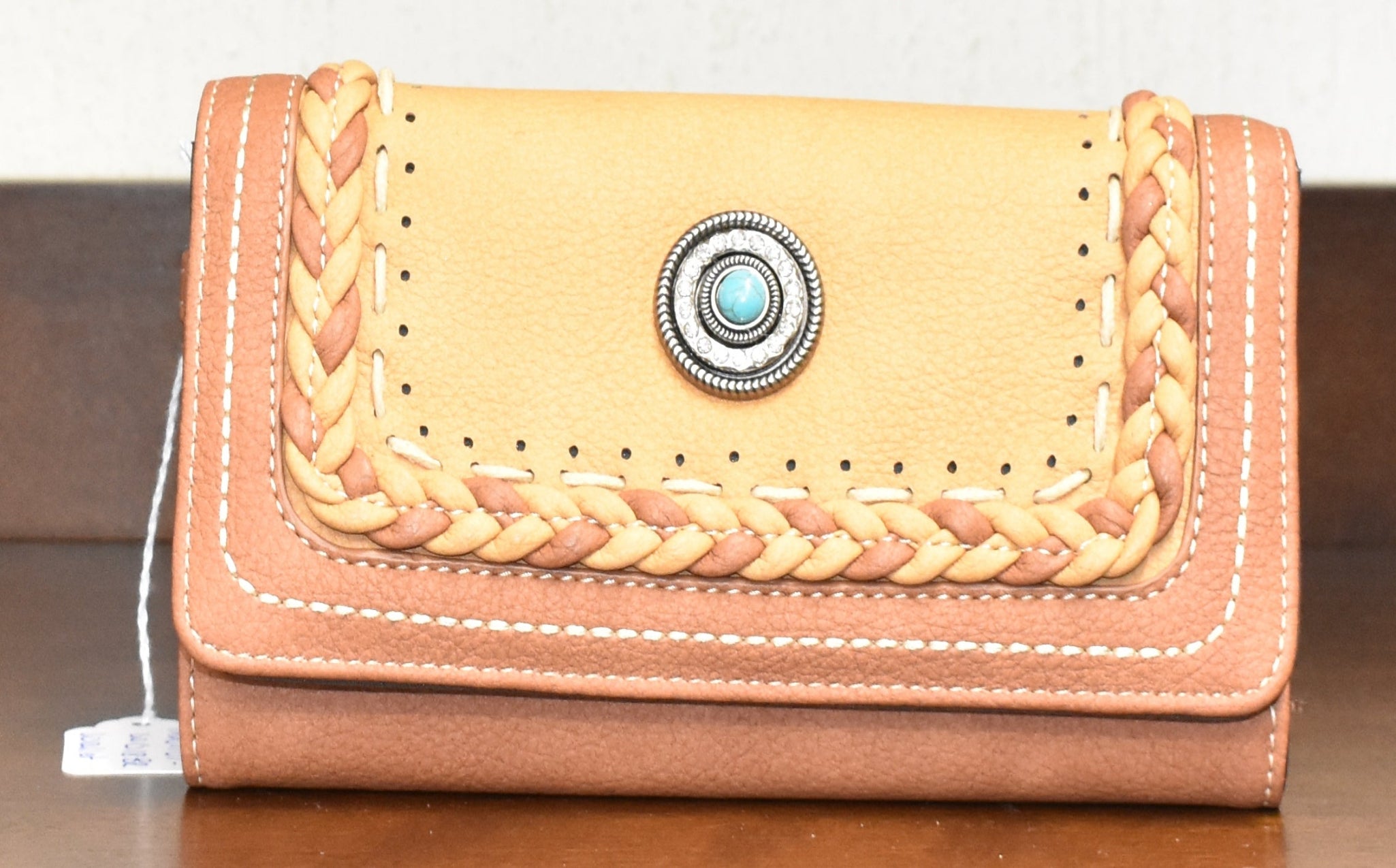 Be fashionably chic with this Montana West wallet, featuring a classic brown base with stylish braid trim! It's the perfect wallet for any fashionable individual, elegantly combining fashion with practicality. Let the braid do the talking! Hand Strap included.