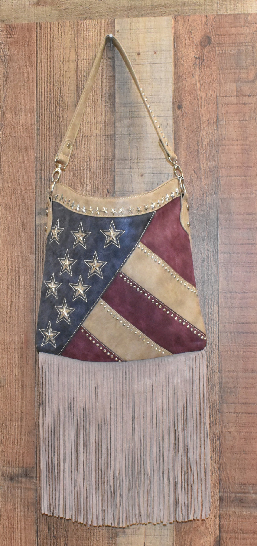 Bring your patriotism out West with this uniquely stylish Montana West American Handbag. Crafted from quality materials and featuring cool fringe, studs, and the Stars and Stripes, you'll turn heads wherever you go! It's the perfect accessory for any fun, stylish, and whimsical fashionista!