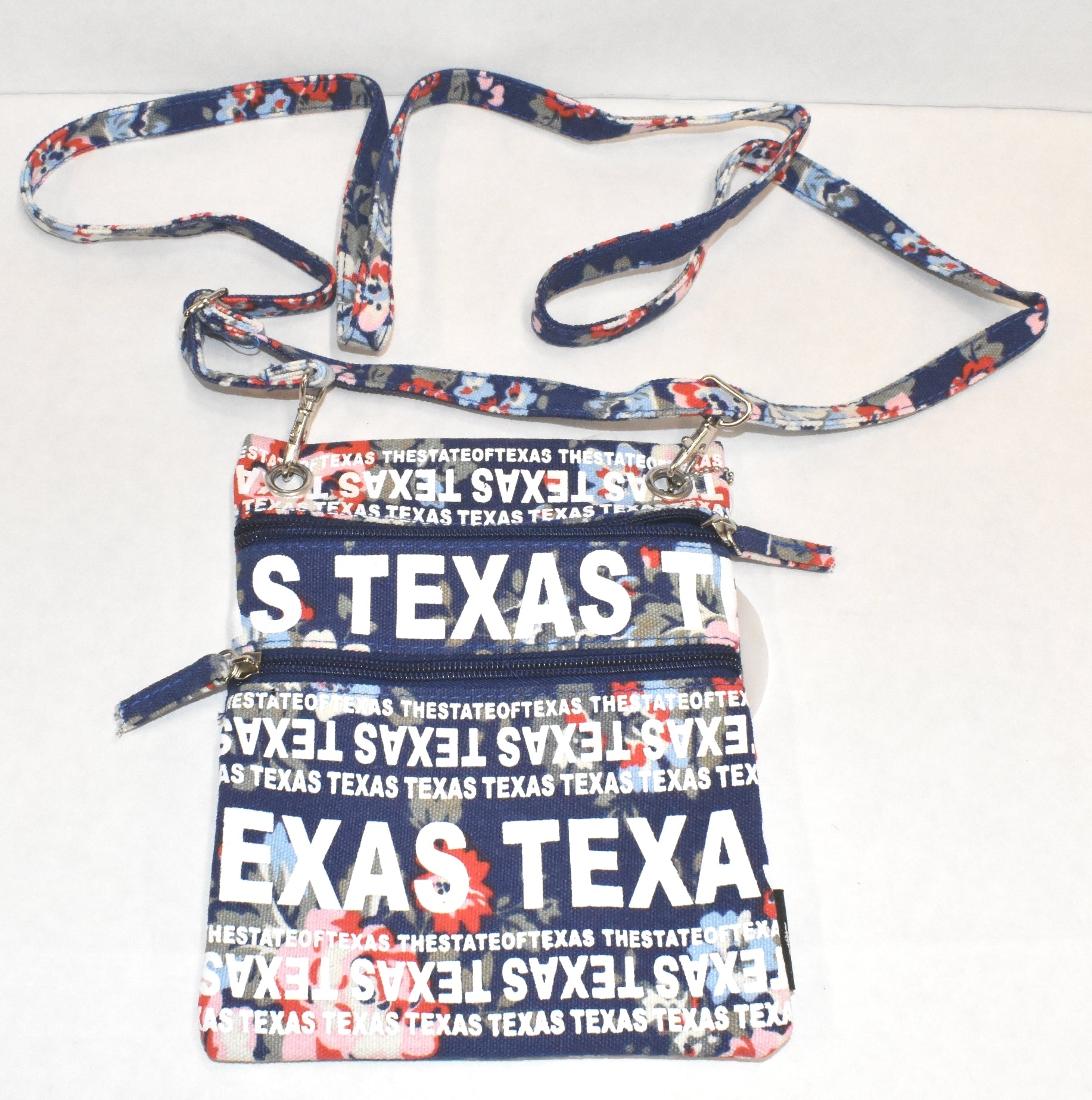 Strap on some Texas style with the Texas Floral Crossbody Bag! This stylish bag features a gorgeous floral print and a reliable crossbody design so you can look great and stay hands-free. To add to the Lone Star State vibes, this bag proudly displays "Texas" in a bold font. Yee-haw!
