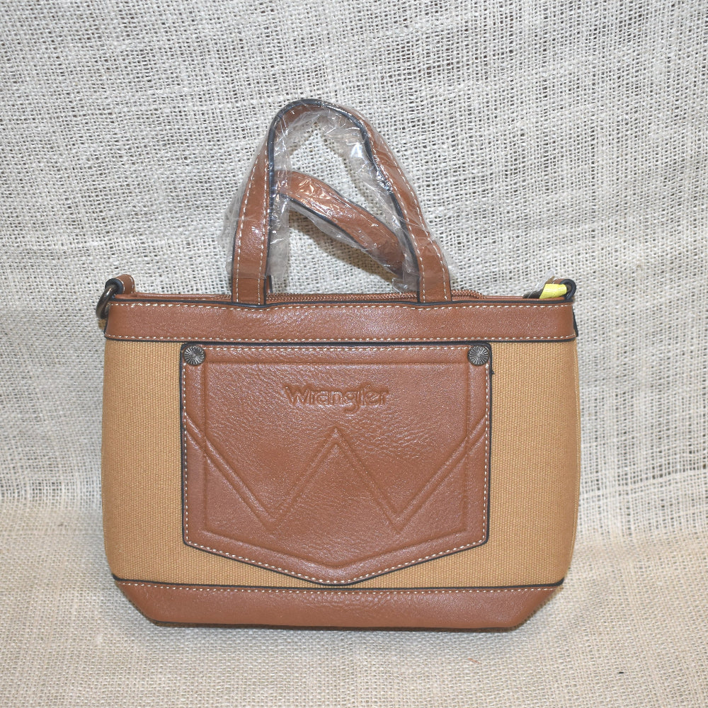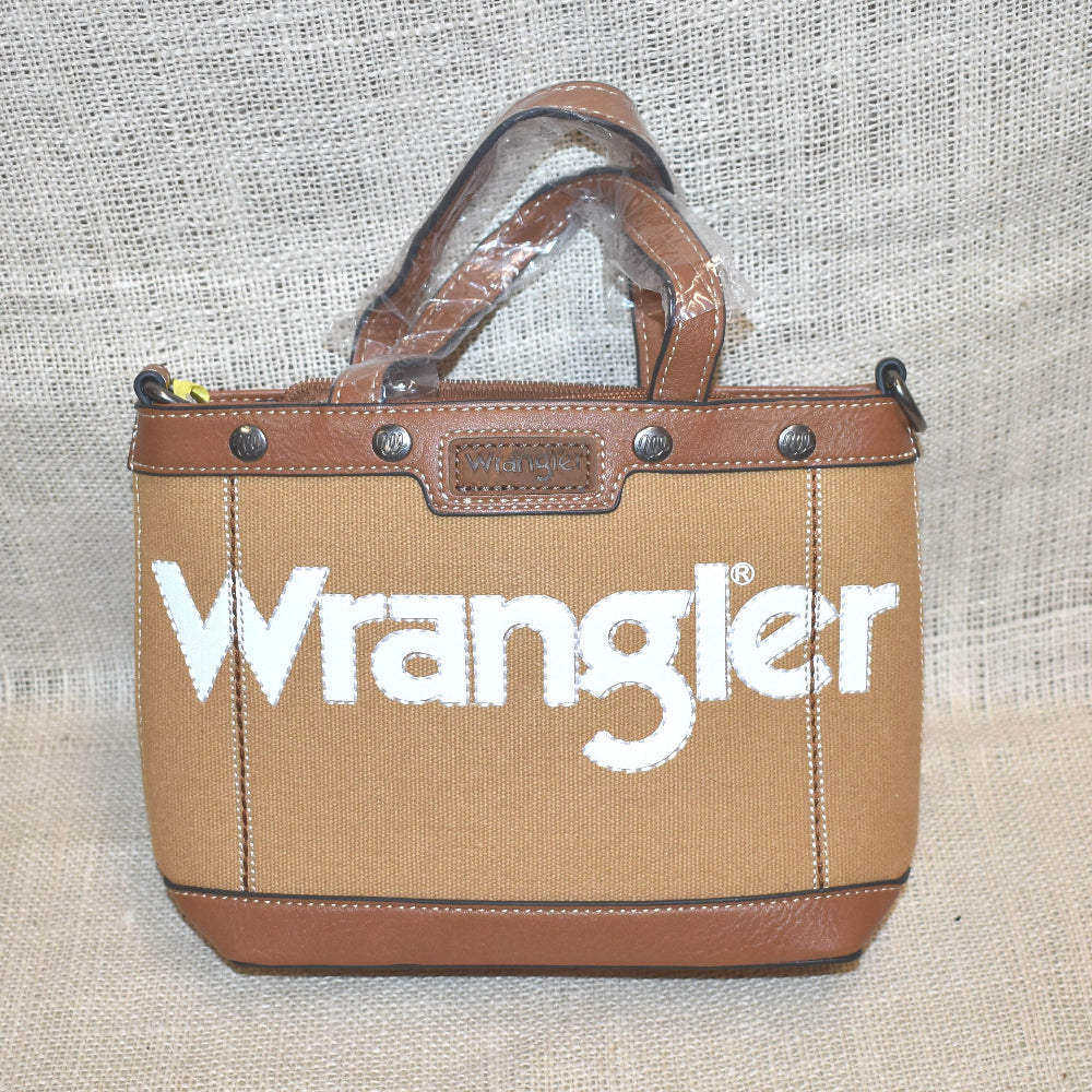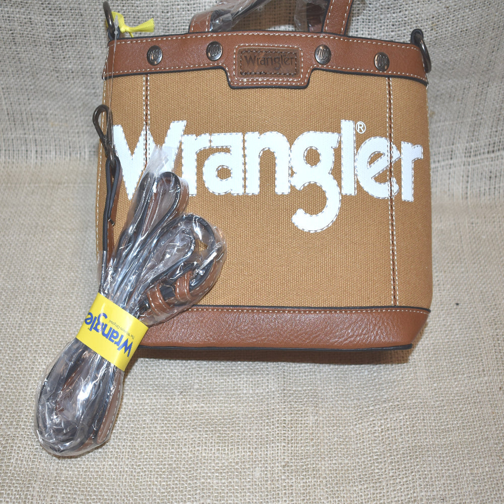 Get ready to wrangle up some style with the Wrangler Bag by Montana West. Made with durable canvas and leather, this brown bag is perfect for any adventure. Plus, it's wrangler approved! (Saddle and horse not included.)