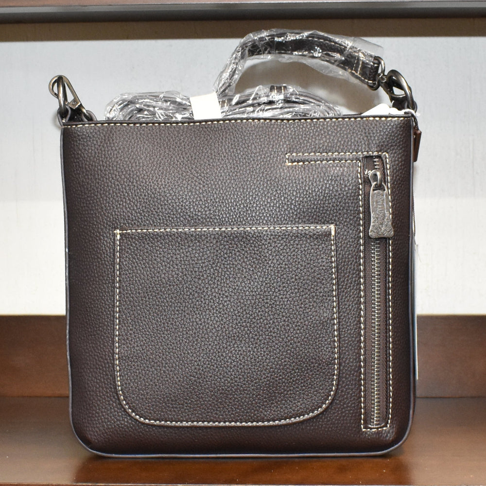 This luxurious handbag is designed for everyday elegance. The concealed carry style allows you to carry everything you need in a sleek and stylish way. The must-have shoulder strap provides a comfortable and secure fit. With the stunning turquoise front, you'll look equally beautiful and confident wherever you go! Bag is from the Trinity Ranch line by Montana West.