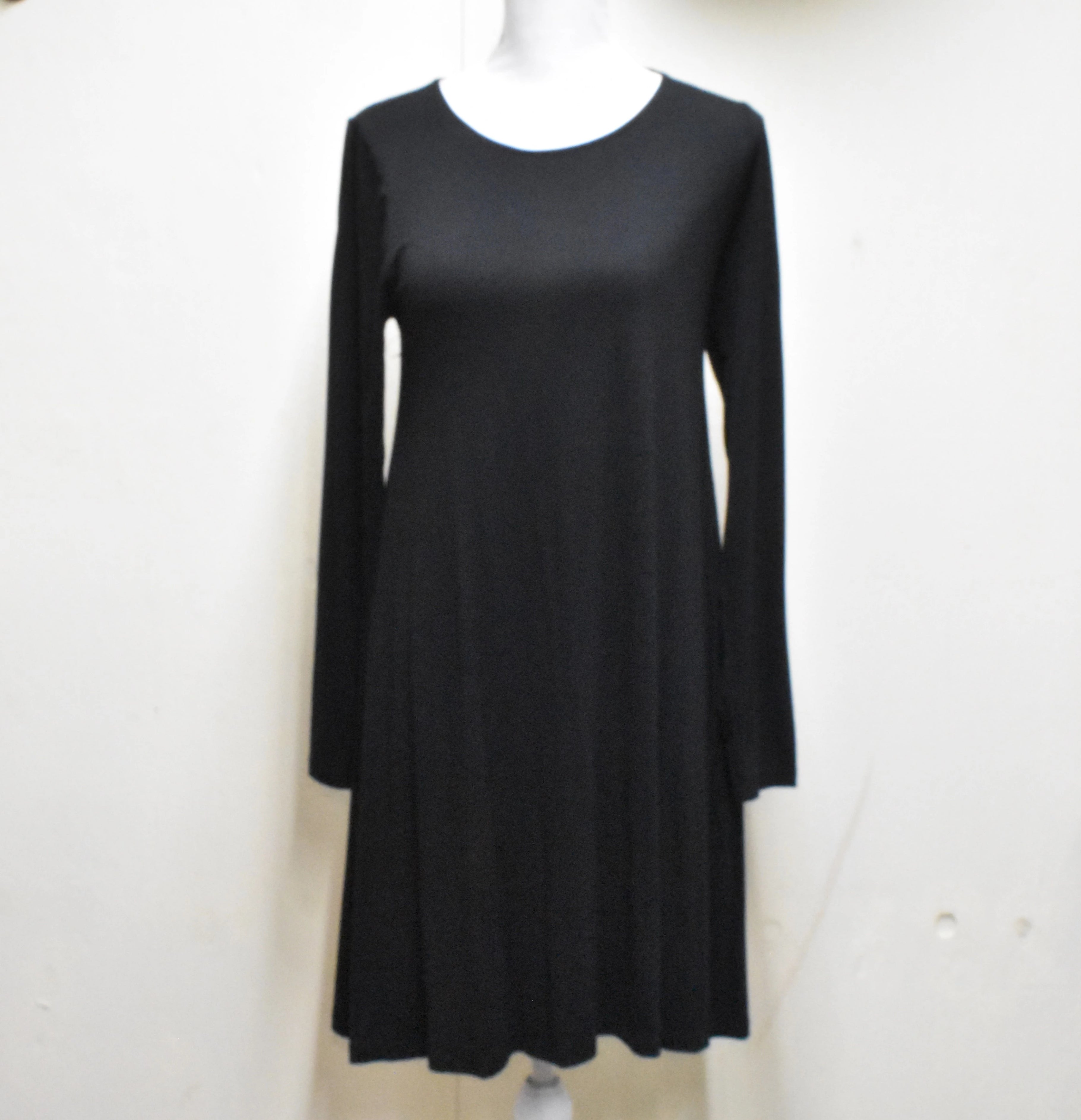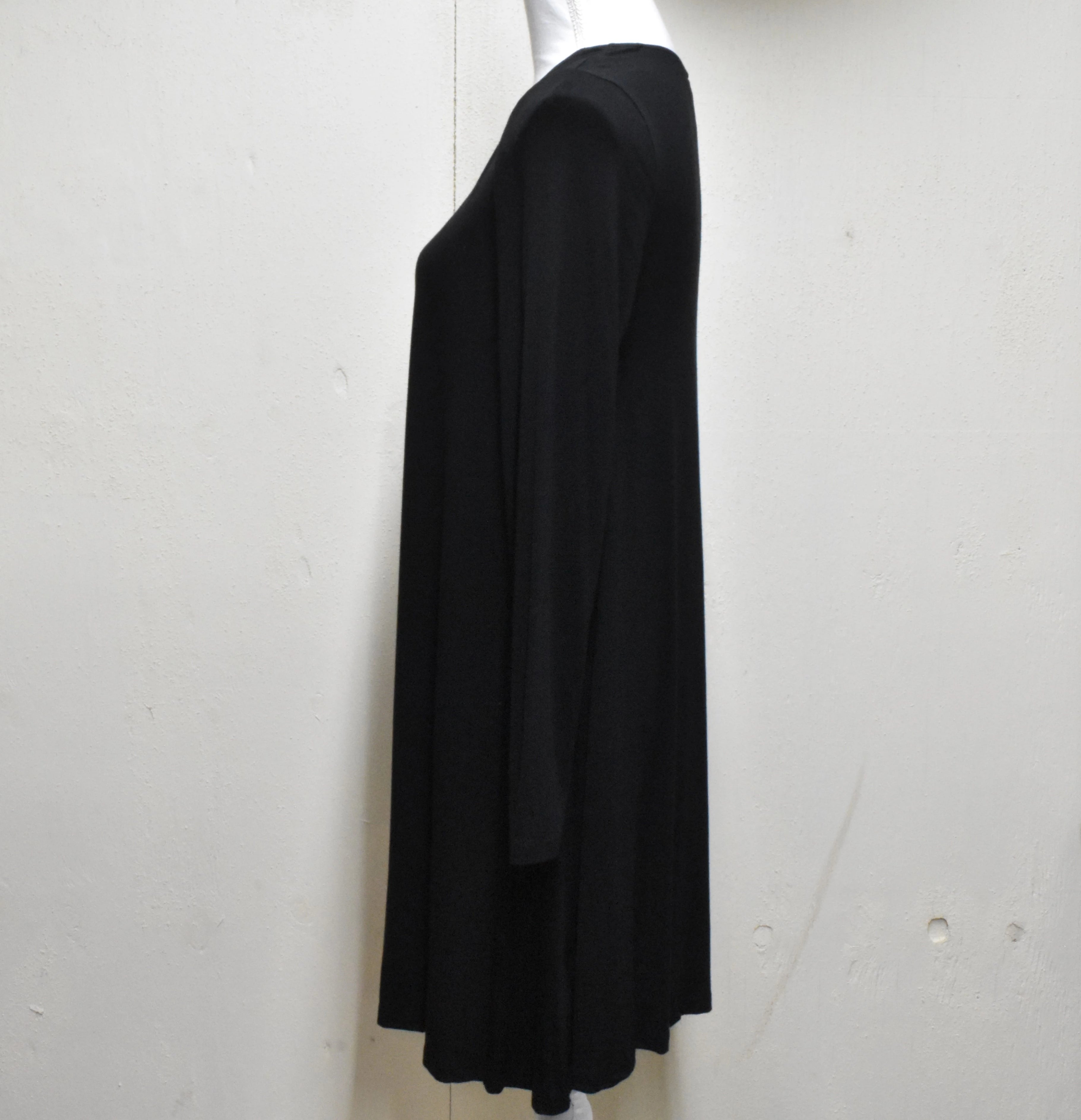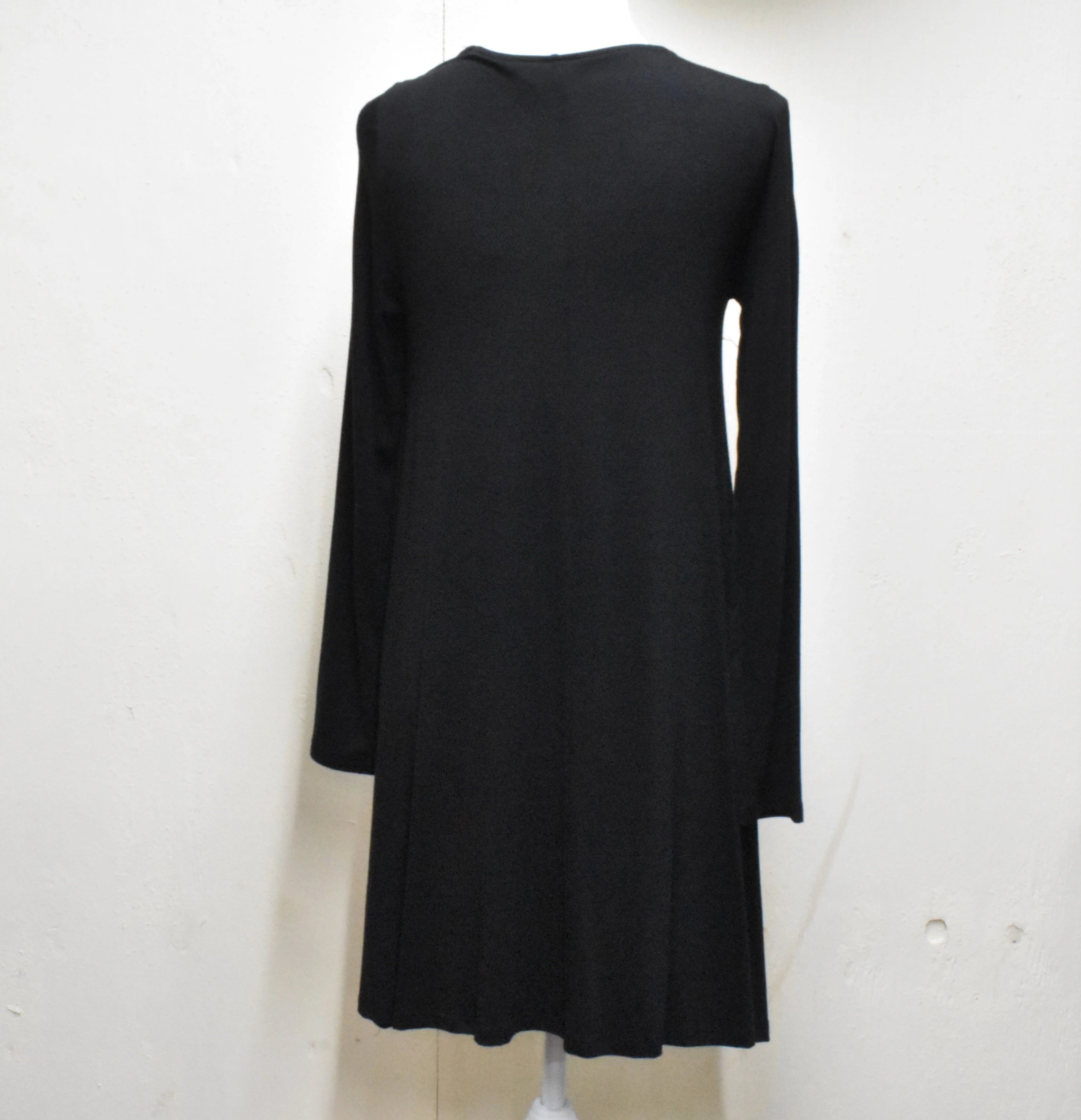 Look sleek and sassy in this long sleeved, flowy black dress! With a sophisticated silhouette and versatile hue, you'll make a stunning statement that's sure to turn heads. So slip on this figure-flattering frock and prepare to wow 'em all night long! (Don't forget the side of confidence - it'll pull the look together perfectly.)